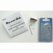 Der aus Edelstahl bestehende gummierte Handgriff besitzt eine Befestigungsöse an der eine 1,5 m lange mit 3 mm Durchmesser starke Schnur befestigt ist.